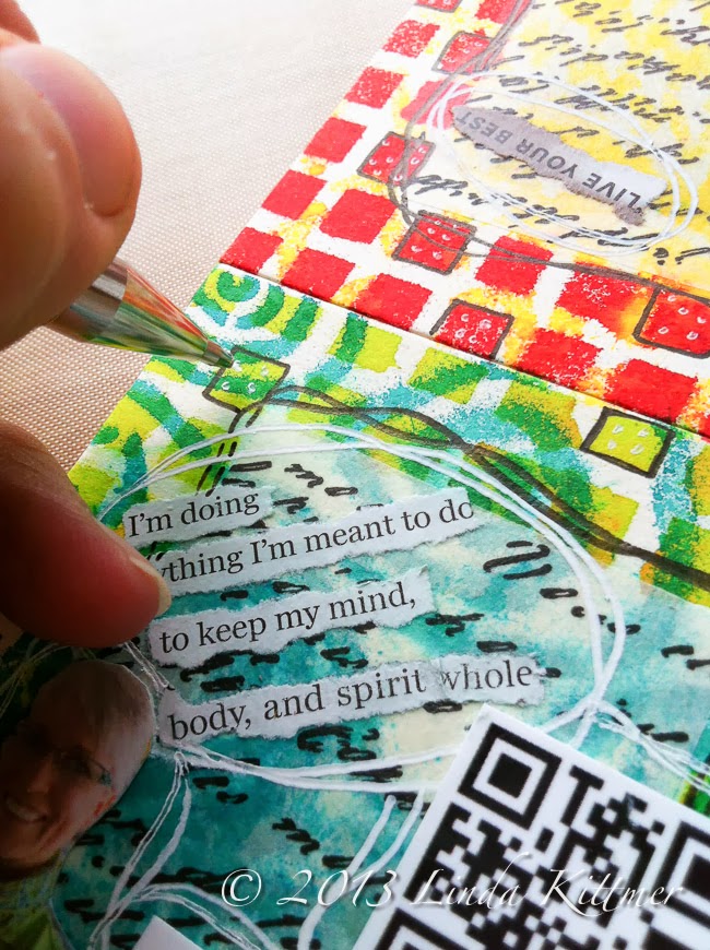 Then I added some doodles using a black Micron, a white Signo, and various colours of paint pen.